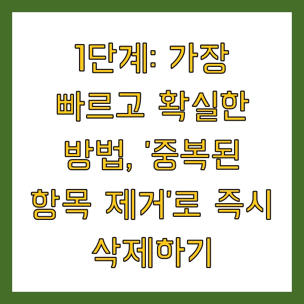 1단계: 가장 빠르고 확실한 방법, '중복된 항목 제거'로 즉시 삭제하기